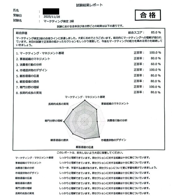 2025年11月にマーケティング知識ほぼ0の状態から約50時間でマーケティング検定2級に一発合格したので実際に受けてみた感想とやってみてよかったと思う勉強法を紹介します。